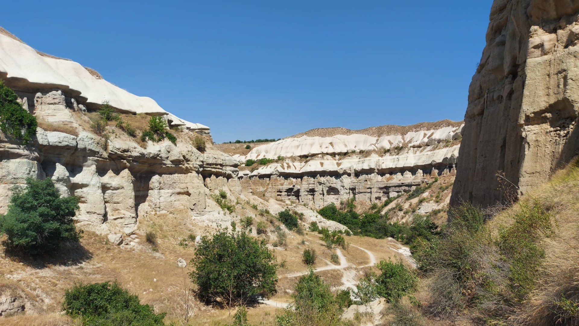 Di tutte le pessime idee avute nel corso dei nostri viaggi, una sicuramente è stata quella di decidere di tornare a Goreme a piedi tramite il sentiero della Pigeon Valley. Il sentiero è bellissimo e di difficoltà medio-facile, ma sicuramente le due del pomeriggio sotto un sole battente non sono l'orario più idoneo. Sorvolando sulla temperatura si è trattato davvero di un bel percorso, in questo canyon continuamente diverso, plasmato dal vento e dalle piogge.